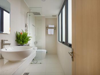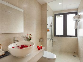 Тропический душ, но утром вода была комнатной температуры, без горячей ( но, вроде, во Вьетнаме это считается нормальным, так что не буду оценивать как минус).