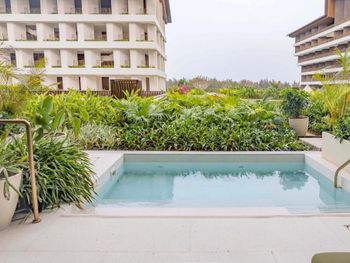 Отель оправдывает свою стоимость. Наш номер располагал собственным небольшим бассейном, глубина которого составляла около 60 сантиметров. Несмотря на скромные размеры, наличие бассейна создавало приятную атмосферу для отдыха на балконе. В стоимость проживания входила ежедневная подача коктейлей в лобби-баре на шестом этаже. В целом, отель оставил положительное впечатление, хотя его расположение имеет некоторые недостатки: район, в котором он находится, является новым, и вокруг ведутся строительные работы, что ограничивает возможности для прогулок. Кроме того, море в этом районе не подходит для купания, пляж безлюден и характеризуется высокими волнами. Рекомендуем данный отель для краткосрочного пребывания.