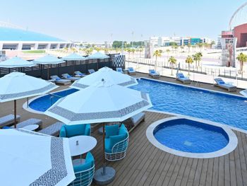 The Torch is connected by a walkway to Villaggio, Doha’s largest shopping mall. Khalifa Stadium is 200 metres away. Free private parking is available at The Torch Doha.