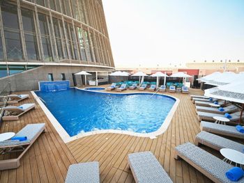 This design hotel, situated in a torch-shaped building, in Doha features a revolving restaurant and panoramic views across the city. It includes an infinity pool, a health club, and beauty parlour.
