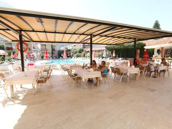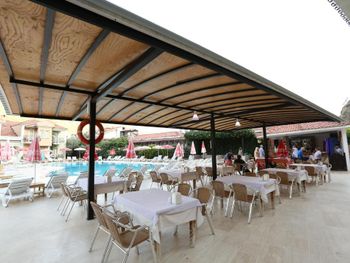 На территории отеля ресторан с просторной открытой террасой, где гости могут насладиться шведским столом, обедами и традиционными турецкими блюдами, приготовленными из свежих продуктов.