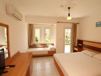 Приезжали из Турунча на одну ночь в Олюдениз на машине. Отель небольшой, но уютный. В номере есть все необходимое. В основном в отеле англичане и другие англоговорящие. Тишина и покой). Ресепшн англоговорящий - для нас это не проблема;-). Очень приятные люди - готовы идти навстречу во всем. Продлили номер на 2 часа бесплатно и до вечера позволили оставить машину на стоянке около отеля. Завтрак стандартный - не богато, но голодными не уйдете. В номере лэдТВ, русских каналов кажется нет. Чистота и все работает. Есть маленькие балкончики, удобно сушить вещи после моря и приятно утром выйти и вдохнуть воздух моря и гор. До пляжа спокойным шагом минут 10.