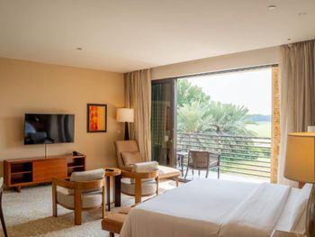 Красивый отель, расположенный среди гольф полей. Уютная, спокойная атмосфера. Персонал очень вежливый и приветливый. На любую просьбу реагируют с улыбкой. Быстро реагируют на просьбы и искренне заботятся о посетителях. Прекрасные завтраки, большой выбор, интересные блюда. Много фруктов и овощей. Даже предоставляется мёд в сотах. Бассейны потрясающие. Вместительные. Один из бассейнов глубиной 1,5м, стандартный на 4 дорожки очень понравился. Наша авиакомпания перенесла перелет на 5 часов раньше и, к сожалению, пришлось уехать раньше. Нам приготовили завтрак в номер. За что отдельное спасибо персоналу! Впечатление остались положительными! Отдых прошёл комфортно!