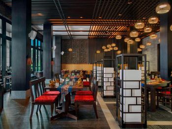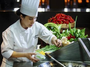 В 6 ресторанах спа-отеля гостям предложат впечатляющий выбор блюд — от превосходной тайской кухни в ресторане Sabai Thai до кафе Waves у бассейна с обслуживанием по меню.