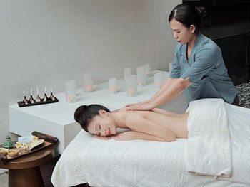 The all-day dining restaurant Seasonal Tastes presents nourishing and imaginative menu creations. Splash Beach Restaurant serving seaside seafood BBQ buffet dinner under the stars, accompanied by live music from an international band for a memorable beachfront evening. Five Senses provides authentic Cantonese cuisines and other Chinese cuisines. The Upper Room Restaurant & Bar provide refreshing drinks and afternoon tea by day, and premium seafood hotpot by night. As evening falls, the starlit rooftop bar transforms into a relaxing social space featuring Maritime Silk Road-inspired cocktails. At Mai, guests can explore the culture and flavors of contemporary Japanese cuisine. Sea La Vie Beach Club features ocean-front loungers, cabanas, an open-air bar, colorful beverages, afternoon tea, and water sports during the day, with cocktails and casual island-style snacks at night. Other dining and drinking options include the Lobby Lounge, and the Pool Bar.