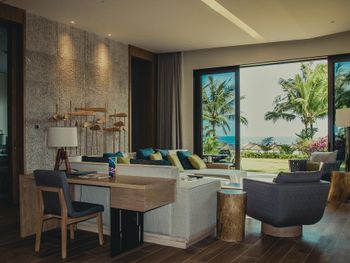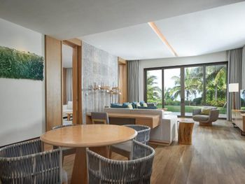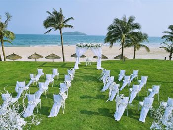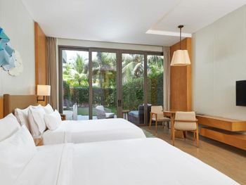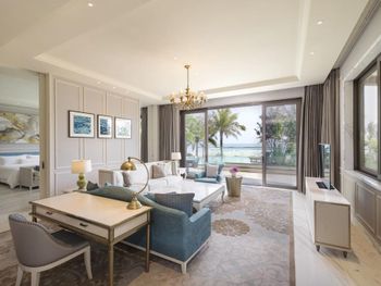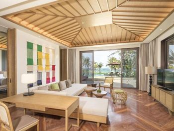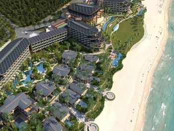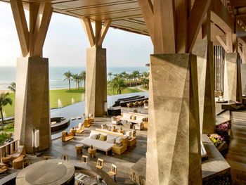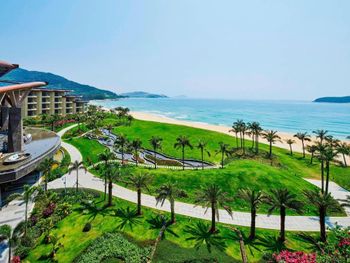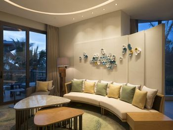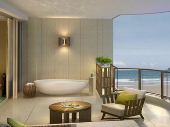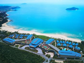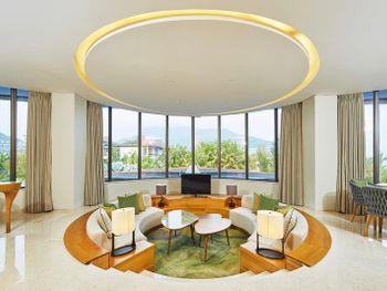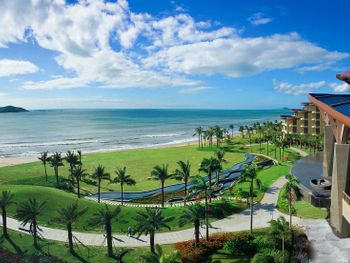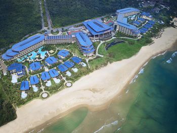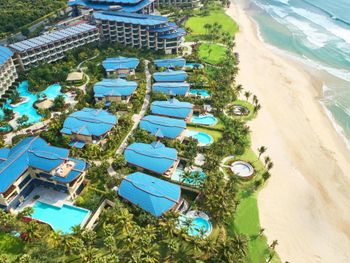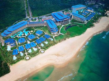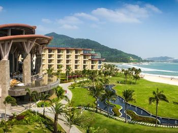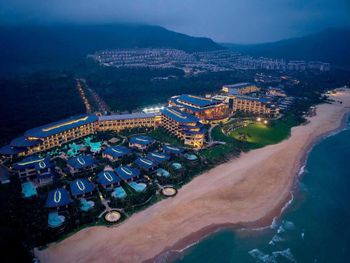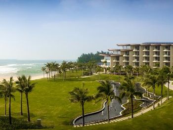Отель ещё новый и не убитый. Большой, прямо на пляже. Очень зелёная и ухоженная территория. Атмосфера благоприятная. В лобби баре поют живьём все известные хиты. Персонал молодой, дружелюбный, готовый прийти на помощь, слышащий Вас. Пляж великолепный!!! Протяжённый- можно гулять километрами. Бесплатный трансфер из/в аэропорт и в Санью к торговому центру. Отличные завтраки! Огромные бассейны! Недалеко от отеля есть ресторанный двор, где можно неплохо поужинать. Там же и мини маркет, аптека, банкомат, винный магазин, кафе европейское. Море чистейшее, мелкое, дно песочное, теплючая вода, но волны сильные довольно часто- детям будет некомфортно купаться. По соседству отель Le Meridien, но он уже старее и хуже. Пляжная линия все равно одна. Если ищите уединения и реального отдыха, то Вам сюда, однозначно. В каждом номере есть большой балкон с видами. На балконе установлена ванна, в которой удобно стирать бельё...))) Учтите, что дополнительные услуги в отеле ОЧЕНЬ дорогие, как и питание, если Вы не включили завтрак. Русских практически нет, потому что они все в Санье тусят, а этот отель на побережье в двух часах езды от Саньи. Инфраструктуры никакой в округе, поэтому, если любите толпы народу и тусовки, то Вам сюда не надо. Для восстановления психики самое оно! У них ещё виллы есть при отеле- очень классные, если большая семья или хорошая компания.