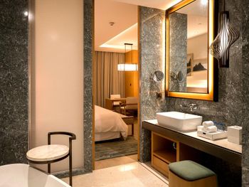Все номера оснащены телевизором с плоским экраном. В числе других удобств — кофемашина и чайник. В каждом номере также есть собственная ванная комната со стандартной/гидромассажной ванной, халатами, тапочками и бесплатными туалетно-косметическими принадлежностями. На территории курортного отеля Westin Shimei Bay работает бесплатный Wi-Fi.