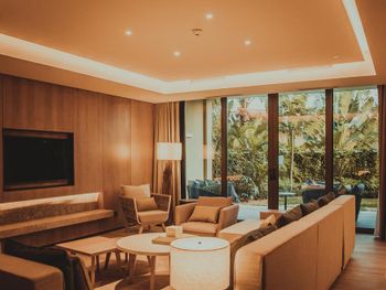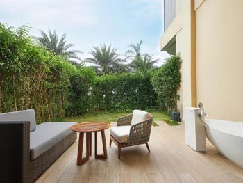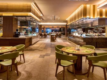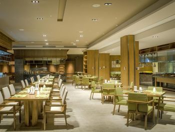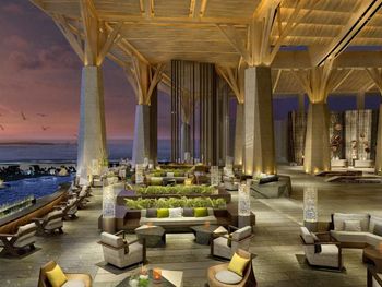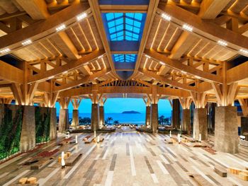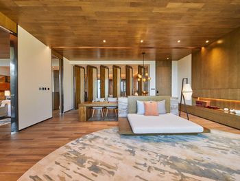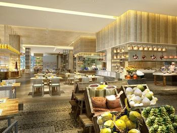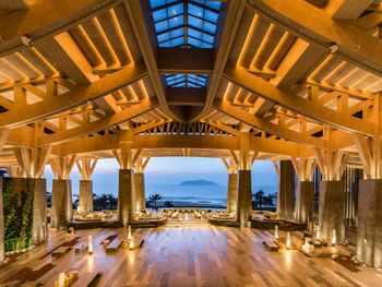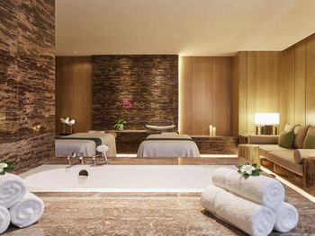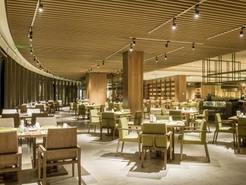 Рестораны на территории не вкусные , вкусно в китайском , но каждый день не будешь ходить . Просто ужасный спа , интерьер отличный , ужасный массаж - массажистки громко разговаривали ( пока их не попросили замолчать ), ни какой техники массажа нет , то лёгкое поглаживание , то максимально много силы прикладывают и давят , после сеанса не было ни воды , ни чая . Чай предложили выпить только на выходе при оплате счёта ( так поняли что было лень нести , комната была расположена далековато от Ресепшен ) за 100 $ с человека не такого отношения ожидаешь