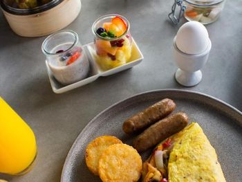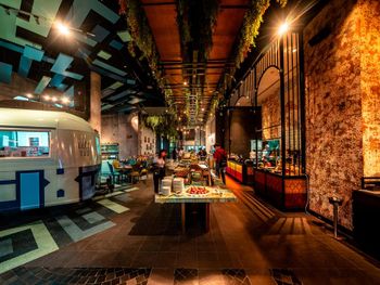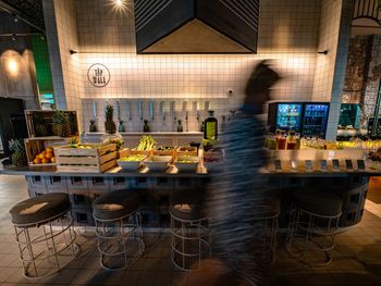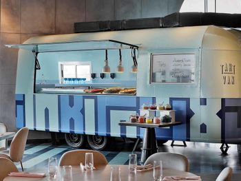 Мы приехали в отель после длительного трансфера, было около 15 часов и очень хотели есть. Работник на ресепшн сказал, что можно поесть в Ресторане Garage, мы пошли туда. Там нам сказали, что до закрытия ресторана осталось 5 мин и нас не пустили, хотя в ресторане было полно народу. Нас отправили в другой японский ресторан рядом, сказав что он работает, но там тоже нас отшили, сказав что уже поздно))). Затем нас отправили в ресторан на крыше возле бассейна. В этом ресторане нам ответили, что люди младше 21–го года не могут посещать это заведение и отправили нас в соседнее здание. Мы дошли до него, но там нам тоже сказали, что они не могут нас обслужить🤦♂️. Вообщем, один из менеджеров отеля нам сказал, что поесть нам не удасться, если только мы закажем в номер, тк рестораны работают по расписанию.