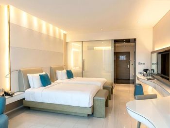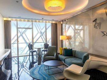 Мы приехали в отель после длительного трансфера, было около 15 часов и очень хотели есть. Работник на ресепшн сказал, что можно поесть в Ресторане Garage, мы пошли туда. Там нам сказали, что до закрытия ресторана осталось 5 мин и нас не пустили, хотя в ресторане было полно народу. Нас отправили в другой японский ресторан рядом, сказав что он работает, но там тоже нас отшили, сказав что уже поздно))). Затем нас отправили в ресторан на крыше возле бассейна. В этом ресторане нам ответили, что люди младше 21–го года не могут посещать это заведение и отправили нас в соседнее здание. Мы дошли до него, но там нам тоже сказали, что они не могут нас обслужить🤦‍♂️. Вообщем, один из менеджеров отеля нам сказал, что поесть нам не удасться, если только мы закажем в номер, тк рестораны работают по расписанию. Конечно, это абсолютно не приемлемо для 5* отеля. Также в лобби на 1-м этаже нет возможности заказать никакие напитки кроме кофе))) До 4 часов утра в отеле долбила громко музыка.