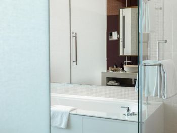 Здесь также можно поплавать в одном из двух бассейнов на крыше, WET Deck и Sun Deck, с видом на закат. К услугам гостей тренажерный зал FIT и студия йоги, а также спа-центр AWAY, где есть комната для парного массажа и хаммам.