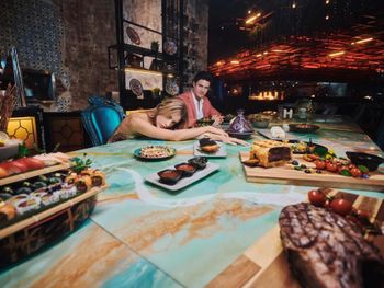 Мы приехали в отель после длительного трансфера, было около 15 часов и очень хотели есть. Работник на ресепшн сказал, что можно поесть в Ресторане Garage, мы пошли туда. Там нам сказали, что до закрытия ресторана осталось 5 мин и нас не пустили, хотя в ресторане было полно народу. Нас отправили в другой японский ресторан рядом, сказав что он работает, но там тоже нас отшили, сказав что уже поздно))). Затем нас отправили в ресторан на крыше возле бассейна. В этом ресторане нам ответили, что люди младше 21–го года не могут посещать это заведение и отправили нас в соседнее здание. Мы дошли до него, но там нам тоже сказали, что они не могут нас обслужить🤦♂️. Вообщем, один из менеджеров отеля нам сказал, что поесть нам не удасться, если только мы закажем в номер, тк рестораны работают по расписанию.