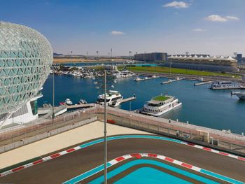 The property features a unique design and modern, stylish rooms with floor-to-ceiling windows, mood lighting, LCD TV, iPod docking station, and free internet. Enjoy spectacular views of the racetrack and Yas Marina.