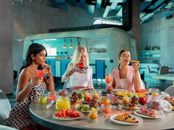 Guests can also enjoy Yas Beach Club, offering an incredible beach facility, a pool, a bar, and a dining area. Complimentary access is included. Please note, transportation is not provided and must be arranged by the guest.