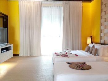 персонал вообще не говорит на каких либо языках, кроме тайского, поэтому невозможно что либо объяснить( на рецепшон работают без желания и очень медленно , без настроения, при заезде пришлось вызвать менеджера, чтобы дали чистый номер без запаха и без пятен на диване, постельное белье особенно подушки очень старые и с неприятным запахом. второй номер дали в разных концах , хотя просили более менее поселить поближе два номера, по факту вообще дали на втором этаже, хотя при регистрации видели что с нами дети и 4 летний ребенок, совсем не думая наперед , что опасно с малышом подниматься вверх вниз по лестнице