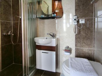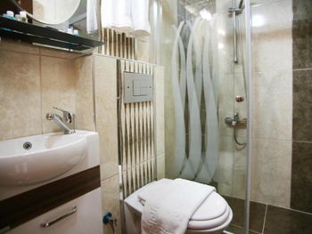 Начну с того, что данный отзыв от неприхотливых путешественниках (30 лет). Ситуация в данном отеле неоднозначная: снимали мы 2 номера эконом класса. При заезде друзей разместили сразу в номер класса стандарт(что является выше), т.к.они были с ребенком. Нам тоже сказали, что завтра ( с чего бы это такая доброта) тоже переселят в стандарт. Итак, что вы будете иметь, если забронируете эконом: жить будете в подвале, в номере всё всё будет в плесени, грязное, старое, вонючее. Все ваши вещи станут неприятно пахнуть и будут влажными. Без окон и в таком номере ну не знаю(тут кто как выдержит). Сразу же мы поняли, отчего такие добрые жесты по переселению в номера "классом выше" - конечно же в таком даже эконом классе жить просто нереально. Далее по отелю: он состоит из 3 частей: эконом(подвал), обычные номера(этажами выше) и есть с соседним входом уже новые номера(там наши друзья и жили) со свежим ремонтом и т.д. Получается если бронируете тут номера - не бронируйте ни в коем случае ЭКОНОМ. Еще раз оговорюсь, что мы жили и в местах похуже в 100раз (например в Гонконге-кто знает-поймет), но там это было оправданно, так как стоили в несколько раз ниже других вариантов - а данный случай абсолютно не таков. Завтрак: предлагают в отеле по цене 3 евро. Забыл сфоткать, но есть там нечего от слова вообще( Колбасы 100 гр магазинной, сыра несколько кубиков, хлеб, вареные яйца (которые съедались сразу и все) ну и молоко хлопья и джемы. Короче на фото тут есть завтра-ничего общего, и это при том, что на 30 лир на улице можно объесться от пуза - не брать короче. Рядом мечеть - орут как ненормальные в5 или 6 утра,всю ночь тоже орут, но уже просто прохожие. Террасса класс на крыше, но сейчас ее смысл теряется из за погоды.В первый раз выкладываю фотки - ну реально просто уберечь дабы людей от эконома(на 3и4 пыль над головой у вас (кровать) А, и еще, нет чайника и кулера нет, короче чаек ток в кафе.