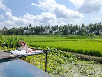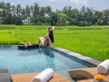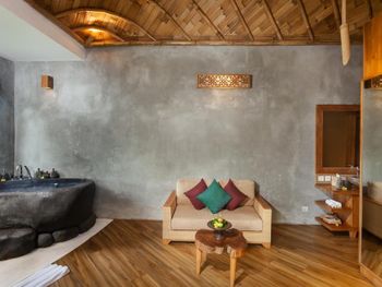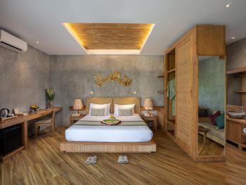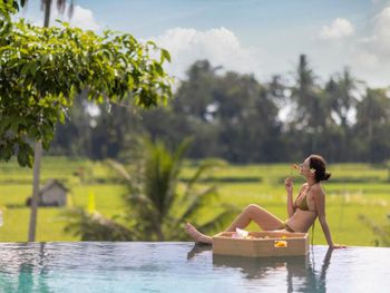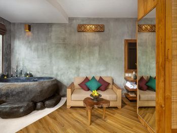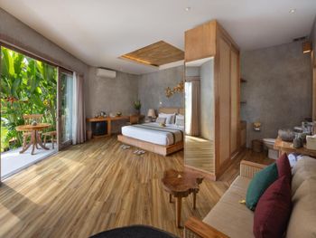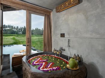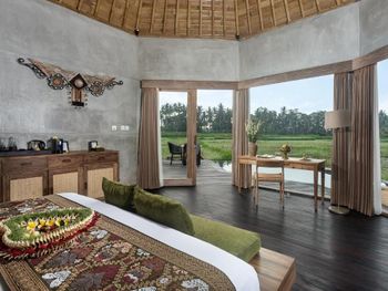 номер очень стильный, вид из общего бассейна был великолепный на рисовые поля😻 в номере всегда после уборки всегда пахло тропическим лесом и дороги спа отелем + было очень много бесплатных бонусов , таких как фотосессия и массаж ног и головы по 15 минут на двоих. ещё бонус - завтрак приносят в любое место на территории отеля к вам абсолютно бесплатно- в бассейн на плывучем подносе-плато / в номер / ресторан- не имеет значения❤️❤️❤️