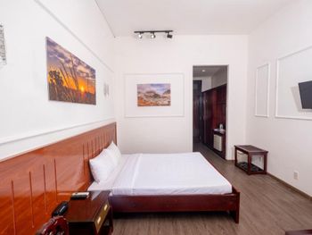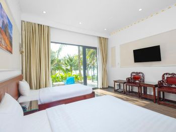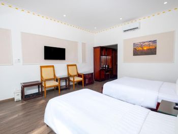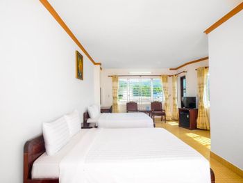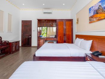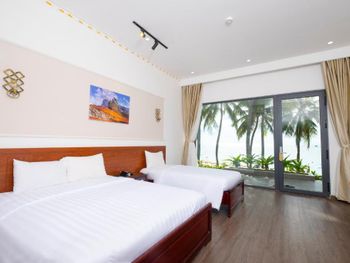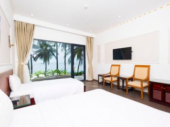 Бронировали номера на 3 семьи 13 человек, жили неделю. Номера маленькие, только переночевать. Уезжали на пару дней в другое место, вернулись пахло канализацией. А так все отлично, шикарный пляж, отличное месторасположение, в шаговой доступности магазинчик , аптека, кафе и рестораны. Дружба и Калинка. Отличное местное кафе с очень вкусным местным супом Фо и гамбургерами. На территории кафе , еда вкусная, цена выше среднего. В целом очень понравилось, пляж шикарный с пуфиками и лежаками, вечером встречать рассвет и отдыхать одно удовольствие!