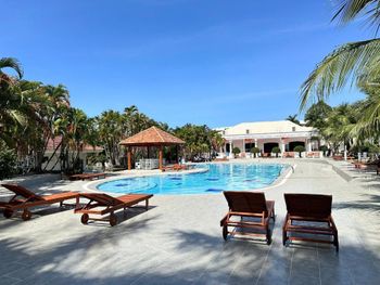 Очень грязный пляж!!! Каждое утро приходилось убирать от лежака окурки, различные обёртки, пластиковые ложки, вилки и тд) У бассейна только два лежака, был еще поломанный, который мы наблюдали все 10 дней) на территории отеля присутствуют помещения в заброшенном состоянии!) в шкафу не было не одной вешалки, покупали сами!) не было полок, но были стулья!) у нашего бунгало обломался лист пальмы, убирали за забор его мы сами, так как его никто не обрезал, не привязал) по шезлонгам просто Анапа!!! Два дня мы были без шезлонгов на мягких пуфах, так как все они были заняты с утра )) потом приходилось вставать в 6:45 чтобы занимать шезлонги!!! Были свидетелями скандала из-за шезлонгов!!) Вроде бы вопрос отель мог бы решить пополнив количество этих шезлонгов, но видимо нет интереса)) будьте готовы к тому, что на пляж приходит очень много людей из других отелей (соседних и не только)!!! И это все при всем том, что на пляже не хватало пуфов, шезлонгов для своих проживающих). Пуфы разбирались приходящими людьми и свои даже лежали на полотенцах на песке!) Вывод, отелю нужна реновация!!! Увеличение шезлонгов !!! Привести бассейн в порядок!!! А так с такой территорией просто обалденный вариант!!!