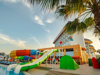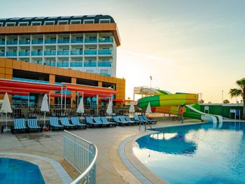 1) Территория не соотвествует размерам 5* отелей. Номеров много, отель преполнен, но размеров ресторана не хватает для людей. 2) Бассейн очень маленткий для такого количества людей, он мутный. 3)Розливное белое вино из бочки это уксус, красное пить можно. 4) Все напики в отеле подают в пластиковых и бумажных стаканчиках, инога можно раздобыть стакан для чая. 5) Персонал курит прямо наж шаурмой в снек баре на пляже, там вообще очень грязно. 6) Второй этаж с баром, контитерской и Алякарт ресторанами закрыт, они не работают, это не приемлемо для такого уровня отелей. 7) Отель заявлен как первая линия, но топать до пляжа надо не напрямую а в обход комплексса вилл рядом. 8) Расположения Бассйена прямо на трассе тоже не радует. Отель просто не должен назваться 5*