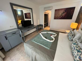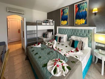 Откуда такие оценки вообще не понимаю, Букинг заявляет отель как Четверку, по факту это обычная тройка, с минусом. По кухне: завтраки 3-, обед, ужин: о мясе и рыбе не мечтаете, курица во всех её проявлениях, про бар я даже писать не хочу, начинаю плакать, ок: пиво - стандартная ссанина, вино- вином это назвать нельзя, водка и джин я даже не знаю с чем сравнить, грязнющее холодное море, анимации ноль. Короче мягко говоря не советую.