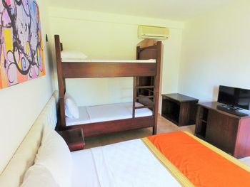 Тесный номер, чемодан открыть можно только на кровати (на полу не хватает места). Немного тарахтел холодильник ночью, пришлось его отключить. В номере было много Комаров, всю ночь мешали спать, так что лучше прихватить с собой фумигатор. Несмотря на это, хотели остаться еще на 1-2 ночи, но нам сказали, что номер есть только на неделю ?‍♀️