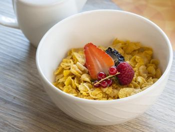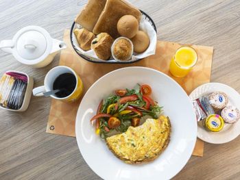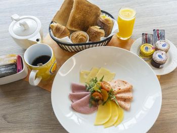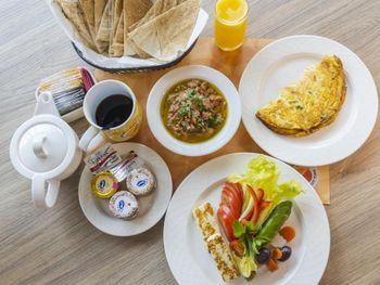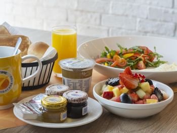 Вкусные разнообразные завтраки, много фруктов, свежая яичница с разными наполнителями, блинчики, выпечка, колбаски, йогурты итд.