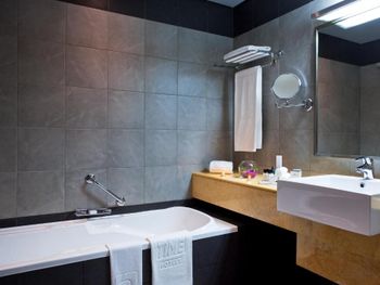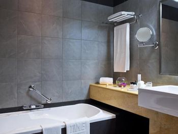 В номере сильно пахло сигаретами. Отель выглядит уставшим. В ванной мигал свет, ванна расположена очень странно - вглубь, не хватало полотенец( на 2 их их было 4 с учетом полотенца для ног)