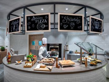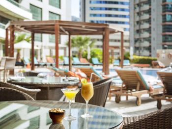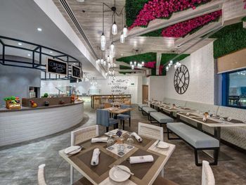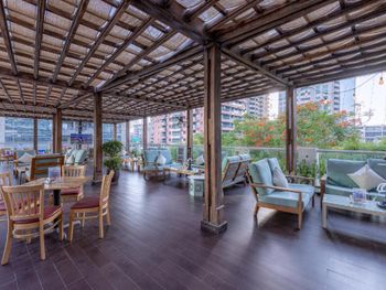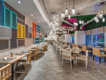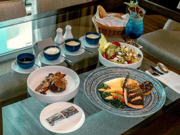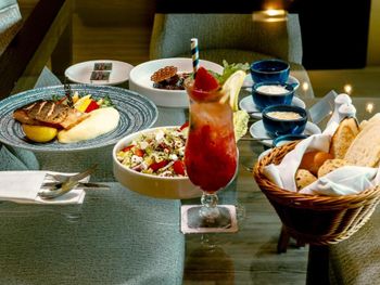 На завтрак, обед и ужин в ресторане отеля подаются блюда интернациональной и региональной кухни. Для гостей предлагается банкетный зал и доставка еды и напитков в номер. В числе прочих удобств бассейн и террасы для загара, где гости могут выпить свежие соки, экзотические безалкогольные коктейли и заказать легкие закуски.