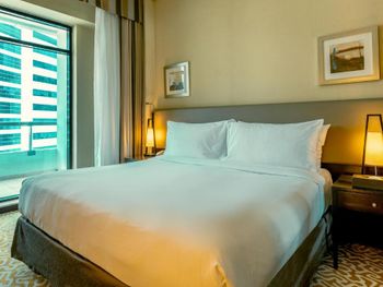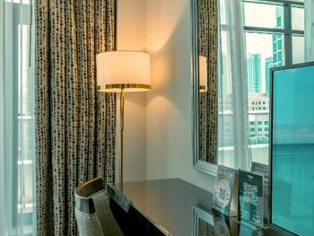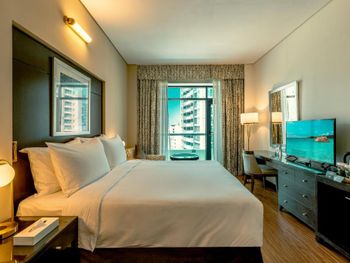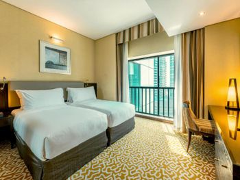 Расположение отеля по меркам Дубай идеальное по отношению к метро. Есть еще ближе остановка автобусов. Также рядом супермаркеты (есть и круглосуточный), кафе, рестораны, английский паб и даже магазин с алкашкой. Обязательный тест на Ковид, который сдается на 6й день прибывания в Дубай, тоже делали в лаборатории возле отеля. До ближайшего пляжа JBR нужно ехать на метро в район Дубай Марина (3 остановки на метро) или на такси. Отель предлпгает завтраки по типу шведский стол. Достаточно не плохие. Можно заказать и ужин, но мы не пользовались этой услугой. Оценить сервис спа, бассеина и тренадерного зала также не удалось( Номер хороший, чистый. Есть достаточное кол-во полотенец, гигиенических наборов, включая щетку, зубную пасту и набор для бритья), но почему то только одни тапки и один халат! Также есть гладильная доска и утюг. По просьбе, принесли в номер фен.