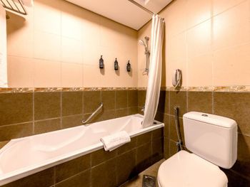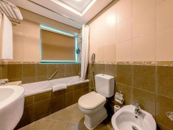ранее заселение только за 150 дирхам, потрепанные номера, сантехника в ужасном состоянии, неудобный душ, большая кровать это две маленький составленных вместе, без дополнительного тонкого матраса, очень чувствуется, отсутствует мебель на балконе,