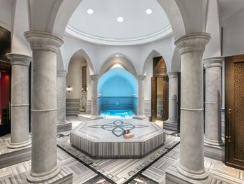 The private beach area is only 1.2 km away and easily reachable by shuttle, by a scenic boat ride or on foot. You can relax in the Turkish bath or enjoy a private boat tour on the river. The extensive spa centre has both indoor and outdoor areas. Titanic Deluxe Belek also offers a private sports field nearby with 3 tennis courts and 3 professional football pitches.