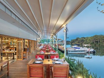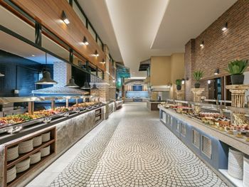 В концепцию входит: все включено: завтрак, поздний завтрак, обед и ужин - шведский стол, закуски, лепешки, гёзлеме, фаст-фуд, мороженое Carte Dor, венские вафли, выпечка, десерты - в определённые часы, свежевыжатый апельсиновый сок на завтрак, ночной снэк; диетическое и вегетарианское меню, некоторые местные и некоторые импортные алкогольные и безалкогольные напитки.