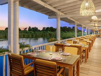 Курсирует шаттл на пляж и катер по реке (3-7 мин.), в течение дня, бесплатно.