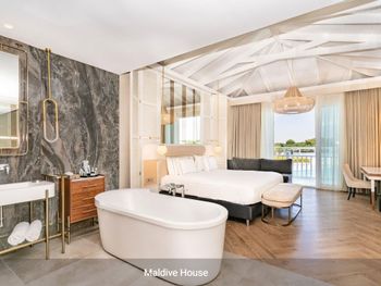 Состоит из основного 6-этажного здания, 3-этажного корпуса Family suite и 17-ти 2-этажных VIP вилл.