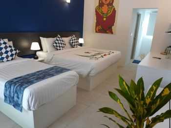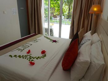 Номер находится далеко от ресепшен и столовой, но это ничего, но вай-фай только в холле у ресепшен, в столовой уже не ловит; в сам номер просят заходить без обуви; в душевой грязновато; постельное белье за 5 ночей ни разу не поменяли; полотенце пляжное дырявое; завтраки - одно название, нечего поесть, только в один день делали омлет и то по просьбе; и персонал конечно - девушка предложила нам экскурсию на резорт за 75$, за двоих 150$, окей, мы съездили, там у бассейна забыли часы наручные, вечером по приезде попросили помочь связаться с резортом, чтоб нашли часы, персонал без ума кормил нас завтраками, чуть позже мы позвоним, подойдите еще позже, завтра еще раз, в итоге мы сами нашли все контакты этого резорта, связались, часы конечно же никто нам не вернул; так вот, по поводу этой экскурсии, девушка, которая продала нам, ничего не сказала об отдельной стоимости трансфера, по итогу при выселении она с нас потребовала еще 80$ за трансфер до резорта и обратно, а мы естественно не рассчитывали в бюджет эту сумму, при том что она 100% нам не говорила об этом; ну в общем, впечатление такое себе об этом отеле