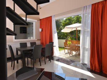 Замечательное расположение на первой линии с шумом океана :). Отдельный вход, экваториальный лес прямо через дорожку. Улыбчивый, вежливый персонал, бильярд в холле доступен в любое время.