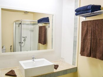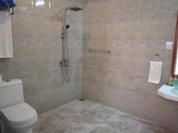 Номер не совсем организован для проживания: всего 1 стул, мебель без ячеек для одежды - просто стенки и перекладины, не было чайника, чашек, ложек в номере (правда после обращения к персоналу чайник с чашками принесли в номер). Вентилятор на потолке крутился с такой скоростью и с таким рёвом, что страшно было включать! Душ не отделен от унитаза, что создаёт определённые неудобства. В ночь перед отъездом в 0.40 гремела музыка, а персонал со своими друзьями развлекался игрой на биллиарде. Звукоизоляция плохая, не могли уснуть. Прекратили только после предложения вызвать полицию.