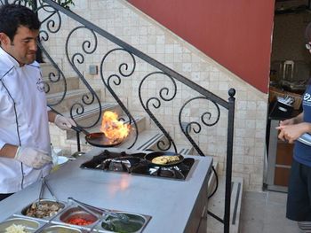 Персонал как правило не говорит по-английски и не очень доброжелателен. Завтраки устроены неудобно (нужно показывать на еду, которую хочешь положить, так как сотрудники не всегда понимали слова), еда скудная. Подача ужинов, включенных в проживание, отличается от подачи по меню и меню меньше для вечера.