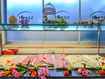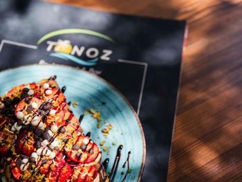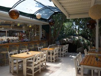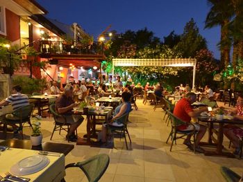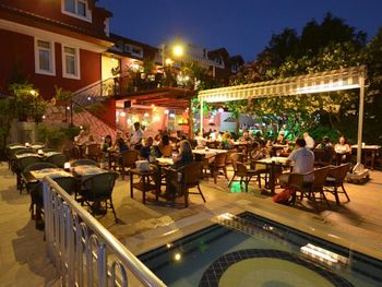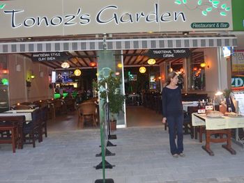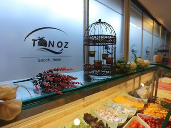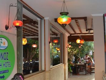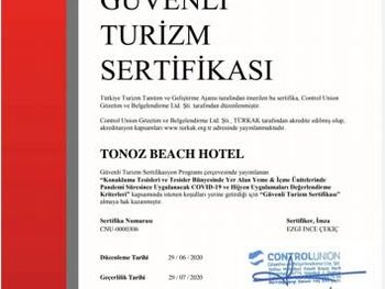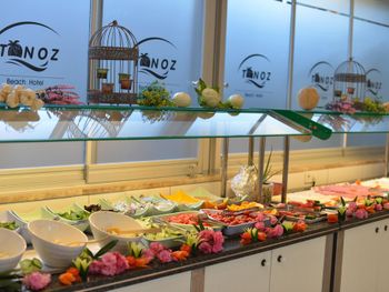 Утром, ежедневно, для гостей сервируют завтрак «шведский стол». Вечером гости могут заказать блюда местной турецкой кухни в красивом внутреннем дворе отеля Tonoz Beach, в окружении экзотических цветов и пальм.