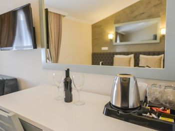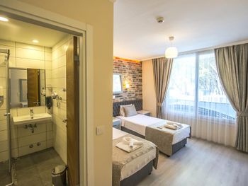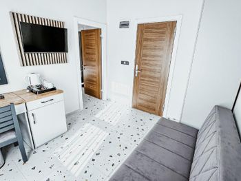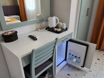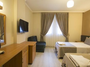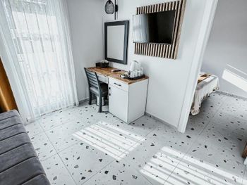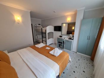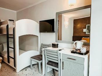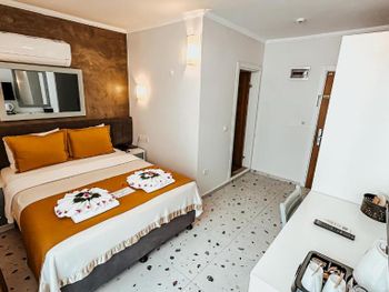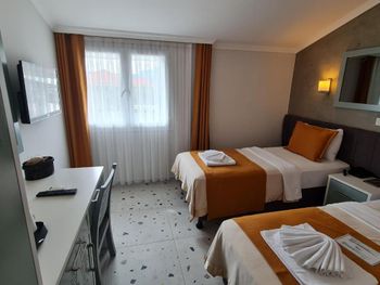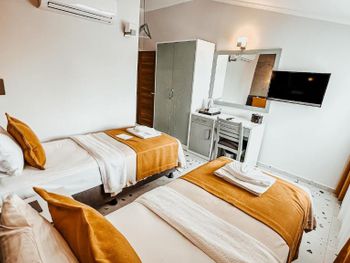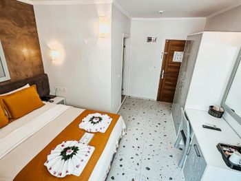 Отель хороший. В номерах хороший современный ремонт. Красивый шкаф. Просторная ванная комната. Но... В 201 номере вода в душевой кабине уходила в сток очень медленно. На ресепшен эта информация была передана, но ситуация не изменилась. Так что моешься по щиколотку в воде. И сам номер не соответствовал фотографии на букинге. Проходя мимо других номеров стало понятно, что номера одной и той же категории имеют различную планировку. И входы в туалетные комнаты могут быть где угодно : при входе в номер (традиционно, как мы выбирали по фото); из номера, возле кровати (как нам досталось - 201 номер) и из номера возле окна. Так что лотерея. И еще : бронировали номер на троих (жили 2 человека), наивно полагая, что будет просторнее комната. Но нет : по размеру номер такой же как обычный 2-х местный, только втиснуто кресло-кровать огромных размеров, которое съело и так не большую площадь номера. И, если не переставлять кровати (как мы сделали), то не понятно куда ставить чемоданы. Если только штабелями на это кресло. Сушилки для купальников есть во всех номерах, прикреплены со стороны улицы под окном. Но нужно иметь свои прищепки. Наш номер был с видом на улицу, при закрытых окнах шум не допекал. Ресторан. У нас был оплачен завтрак и он нам понравился. Достаточно всего, включая овощные нарезки помидор, огурцов, зеленых салатов, просто зелени, несколько видов оливок(!). НО...ни оливкового масла, ни бальзамического уксуса или хотя бы нарезки лимона представлено не было. Это в стране где оливы растут вдоль дорог как у нас тополя! Дважды заказывали обед в ресторане отеля. НЕ понравилось. И в завершении : мы уезжали из отеля в субботу 28 сентября рано утром. Заранее, в четверг, подошли на ресепшен и заказали ланч бокс. Нам было выдано меню (!), где мы отметили что нам нужно, указали дату, время. В результате ланч бокс мы не получили.