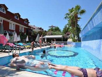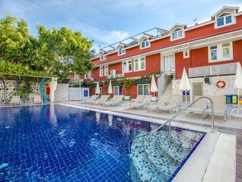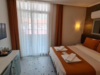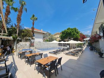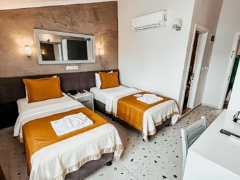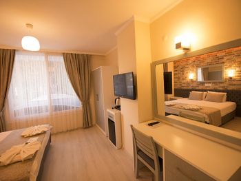 Отель расположен рядом с пляжем (2 минуты ходьбы) и близко от остановки долмушей.