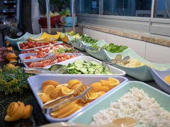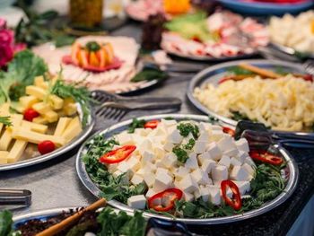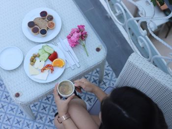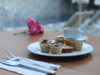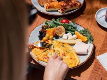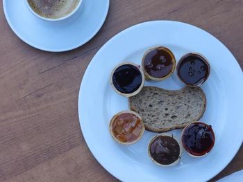 Разнообразный вкусный завтрак, близко к морю.