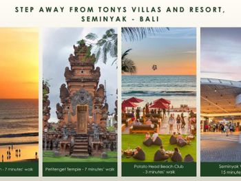 Курортный отель Tonys Villas находится в 10 минутах езды от магазинов и изысканных ресторанов Семиньяка. Поездка до международного аэропорта Нгурах-Рай занимает 30 минут.