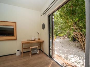Современный и лаконичный дизайн номера. Ванна была на балконе с высоким забором (не знаю плюс ли это?). Забронировали для нас спидбот из аэропорта до Расду. Встретили по приезде на причале, помогли с чемоданами. Хозяин быстро отвечал на все вопросы в вотсапе, осведомил о ситуации на Тодду. Должны были тут остановиться на два дня и после поехать на Тодду, но как оказалось Тодду закрыли из-за коронавируса, без проблем смогли остаться еще на сутки. Огромное спасибо✨
