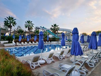 Персонал При въезде у нас уточнили наши важные даты + мы отдельно отмечали при бронировании букинга, что у нас годовщина брака 10 лет. Никаких поздравлений и подарков. И в целом это окей, если вы сами не запрашиваете такую информацию. При выселении выяснилось, что обычно они дарят вино и фрукты. Было очень неприятно. При выселении с нас также списали деньги за звонок в страховую, а когда я попросила чек и выписку не прописали номер, из-за чего страховая компания не компенсировала нам эти расходы. Нигде не было указано, что звонок по Турции платный. Территория Довольно маленькая, по фотографиям ощущалось, что отель больше. Рядом есть прогулочный променад, а городе не супер приятно гулять из-за торговцев и кучи цыган на каждом углу. Бассейн Хоть и бассейнов 4 (общий, Детский мелкий, тихий и горки) у отеля были постоянные скандалы и споры за лежаки из-за некорректной формулировки правил (которую справедливости ради поправили, но не сильно это помогло). Люди занимали места в разных частях отеля и просто не приходили, по правилам это должно как-то регулироваться, по факту, конечно же нет. В целом странно, что занимать лежаки можно чем угодно, а не только отельными полотенцами. Если в 7 утра не занял комфортные места, то остался без лежаков. Один из бассейнов позиционировался как тихий, однако там бесконечно скакали, орали и брызгались дети, никто это не регулировал. Температура воды слишком теплая и поэтому плавание в воде никак не спасало от жары Пляж В середине нашего отпуска ночью был шторм или что-то произошло, все буйки смело, а на пляже мы нашли розочку от бутылки и осколки от бокалов, после этого на пляж заходить не было никакого желания, мы крайне удивились, что никто не убрал стекла с береговой за 5 дней после шторма. Еда Очень странно ставить гриль на улице в 40 градусов жары и высокую влажность за час до ужина, в день турецкой кухни от шаурмы стоял отчетливый запах гнили. В рисе нашли пластик, мне кажется, это недопустимо.