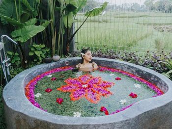 Вид на рисовые поля, очень тихое красивое место, бунгало как мини вилла ) с ванной с цветами