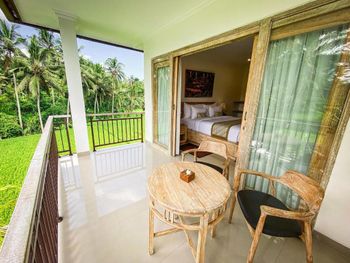 все довольно новое, вид потрясающий на рисовые поля, кондиционер хорошо работает, балкон большой, завтраки в номер на балкон могут принести.