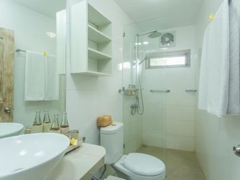 В нашем номера душевая кабина и раковина были в номере, недалеко от кровати. Закрыться можно было шторкой. Непривычно!