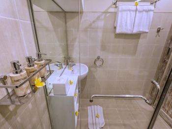 Расстроило почти полное отсутствие горячей воды в номере. Горячая вода шла от силы минуты 2, потом холодная, мыться было невозможно. Был скол на раковине и в душе, под раковиной первый день текла вода сильно, но мы попросили с этим что-то решить, на второй день все исправили. Очень печально было смотреть на грязный душ (плесень на резинке) и резинка холодильника. В остальном все очень хорошо 👍🏻